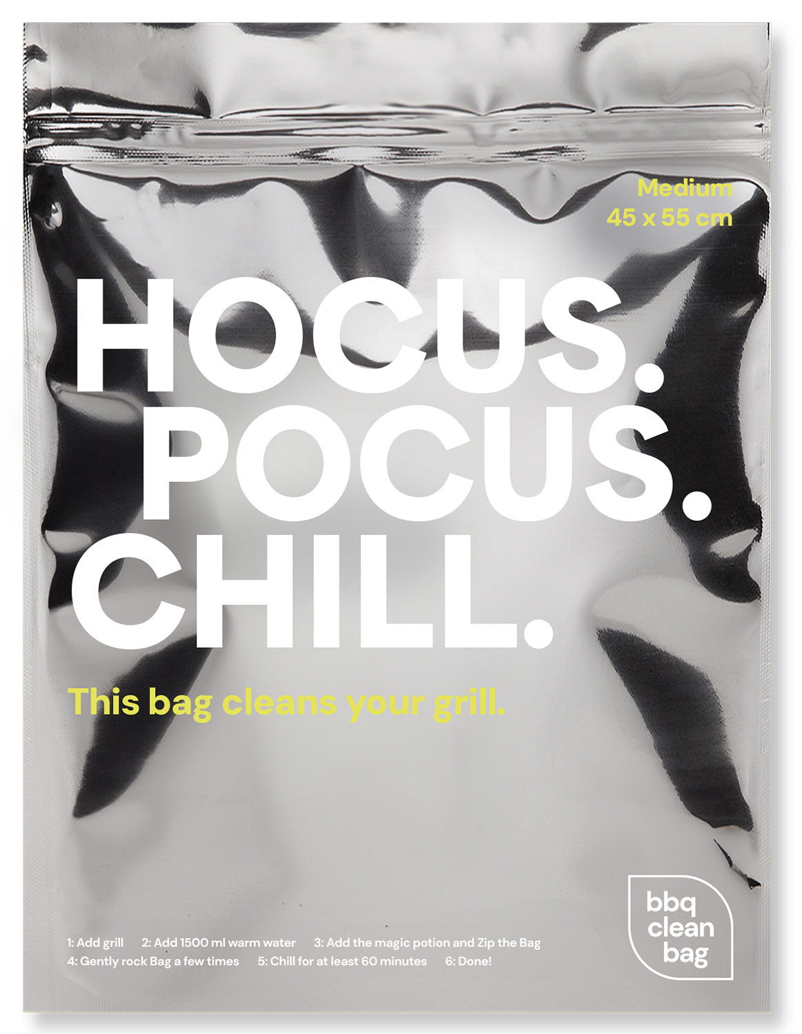 Dein verschmutztes Grillzubehör wird mit der Clean Bag im Kinderspiel sauber: Einfach Rost, Platte oder andere Teile zusammen mit einer Reinigungstablette in die Tasche packen, mit Wasser füllen und verschließen.