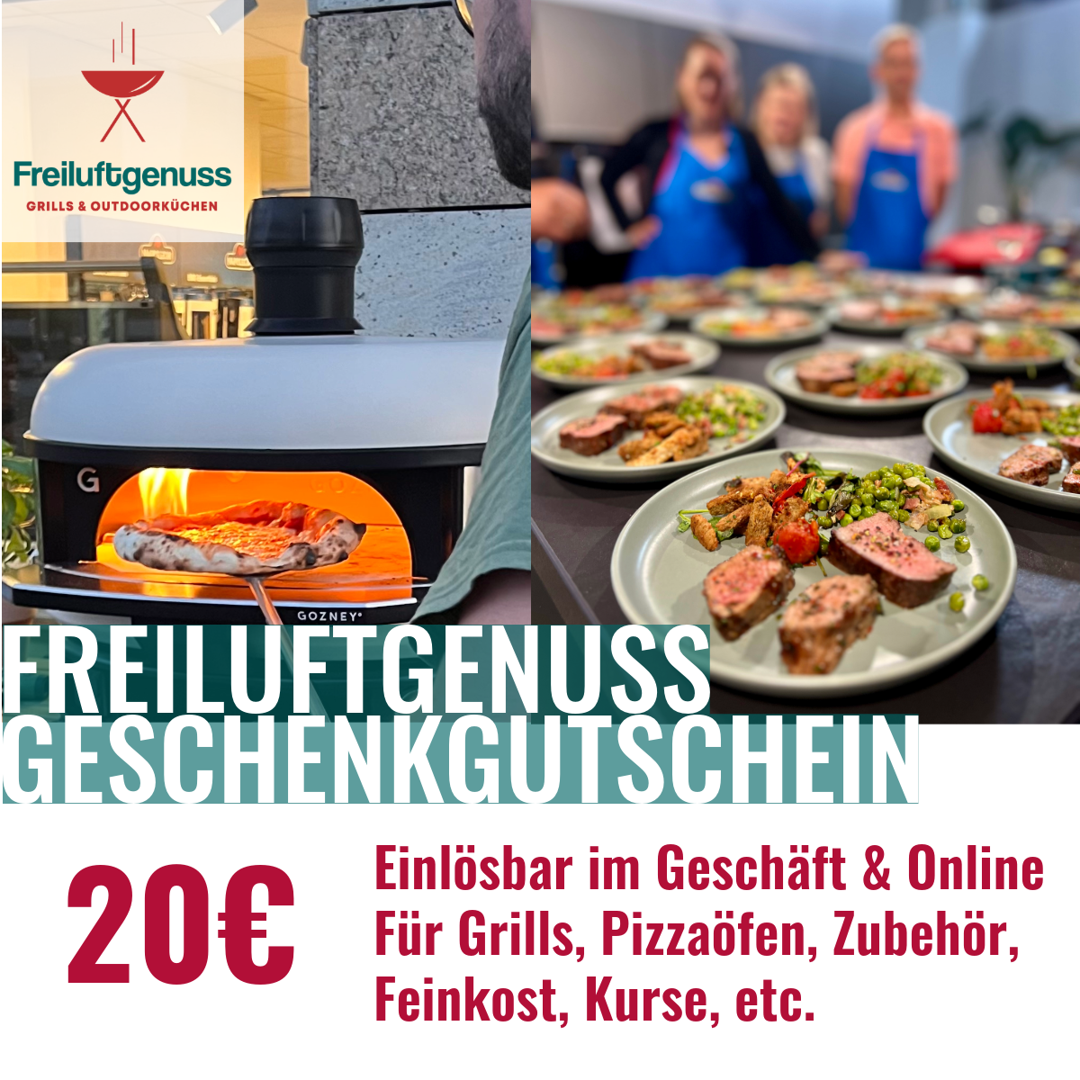 With the outdoor enjoyment gift voucher you always have a nice present ready for friends and relatives. Whether for a seminar, grill accessories, spices & sauces or as a financial injection for a new grill or pizza oven. Everyone who receives a gift will find something nice for themselves in the outdoor enjoyment.