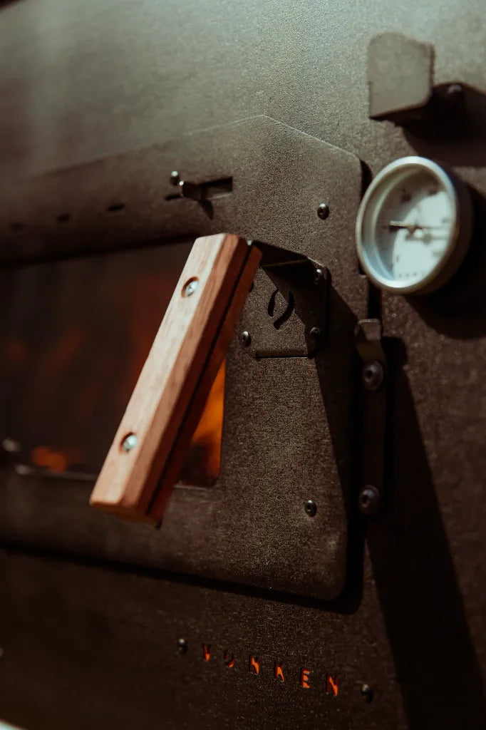 Diese isolierte Tür mit Sichtfenster hält deinen Backofen dicht verschlossen und bewahrt gleichzeitig die faszinierende Flammenoptik.