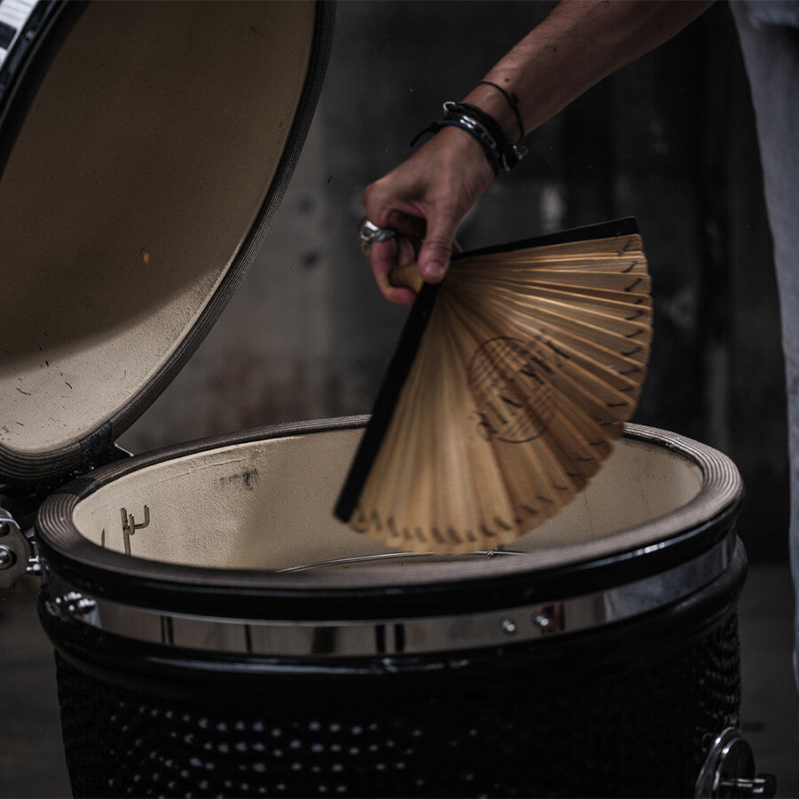 Dieser Handfeuerfächer aus Bambus ist perfekt, um deine Kohle anzuzünden. Durch das Fächern sorgst du für mehr Luftzirkulation, damit die Kohlen schneller Feuer fangen.
