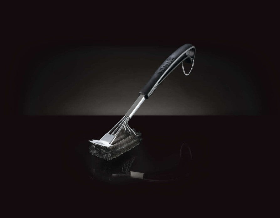 Mit der dreireihigen Grillbürste aus Edelstahl entfernst du mühelos hartnäckige Rückstände von deinen Grillrosten aus Edelstahl oder Gusseisen.