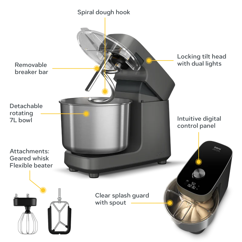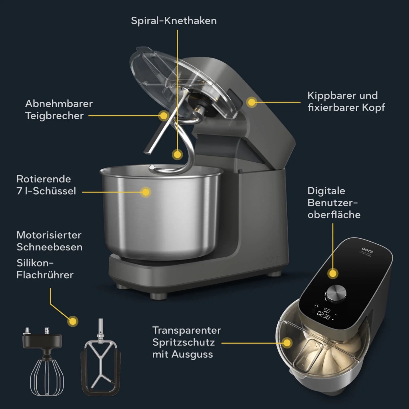 Bring die bewährte Spiralrührtechnologie von Profibäckereien direkt in deine Küche – mit dem Ooni Halo Pro.